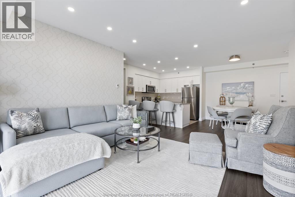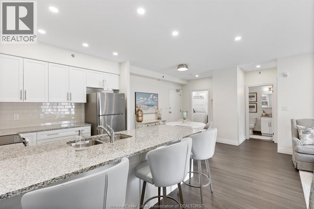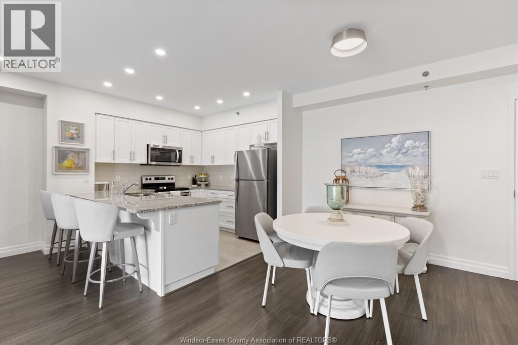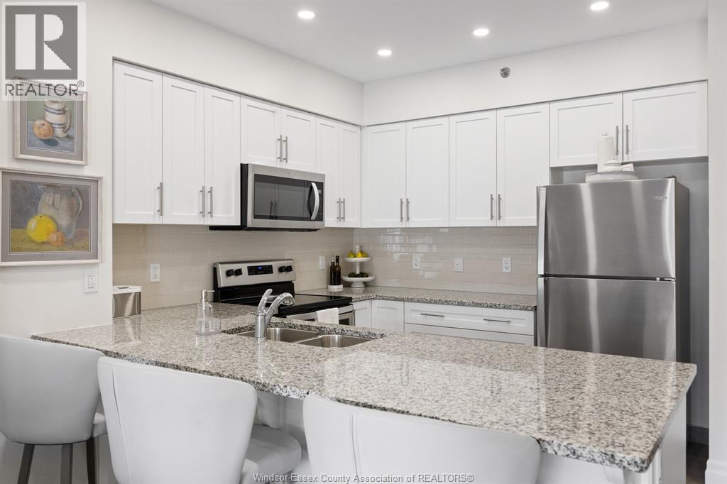 Located in Kingsville, this rare condo features 2 bedrooms and 2 full bathrooms, including a spacious primary suite with an ensuite. The ensuite offers a walk-in ceramic shower with glass doors, double sinks and multiple storage areas. The approximately 1200 square foot open concept layout gives you an attractively designed kitchen with granite countertops and stainless-steel appliances. You'll enjoy a bright and spacious living area allowing natural light and easy access to your walkout patio. Your private outdoor space is much larger than your standard balcony and is fully fenced with aggregate and custom turf areas. Directly outside your fence is a large outdoor common space with multiple sitting areas and provided barbecues. Additionally provided is, a top floor party room and rooftop lounge with amazing views of Lakeside Park and Lake Erie. This property includes a heated underground parking space and ensuite laundry facilities. Experience comfortable, worry-free, low maintenance living in the perfect location in beautiful Kingsville. Call today for more information and to view this STUNNING UNIT! (id:4555)